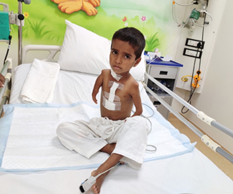Little Priyansh seeks comfort in either the touch of his mother’s hand or his pacifier…